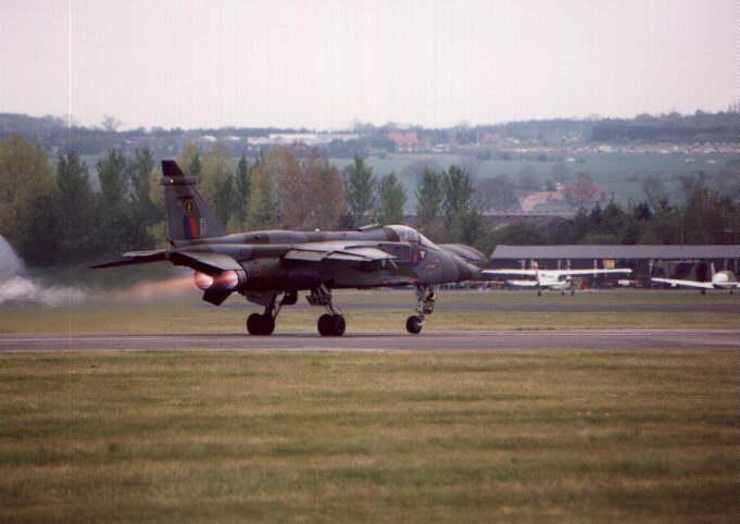 | gjaguar.jpg | 34874 bytes | GR.1A - XX965 - No.226 OCU, RAF Lossiemouth Just starting its take-off roll in full reheat from RAF Lossiemouth in Scotland, clean of weapons and external fuel, prior to a blistering practice aerobatic display. - Paul Crossley's (RAF) Plane Page |