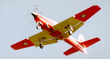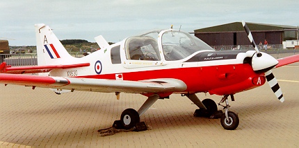 Flaps down and prop spinning slowly as this T1 comes in to land at RAF Cranwell in Lincolnshire. Note the engine exhaust pipes behind the nose wheel.