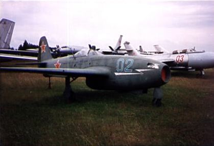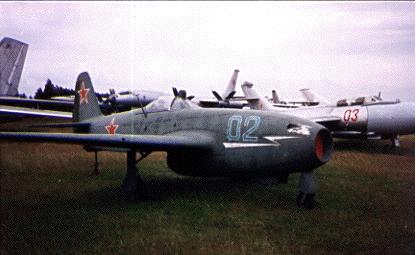 | Yak-15.JPG | 17326 bytes | Transitional Jet-fighter: Yak-15. It retained the wings, the tail-wheel undercarriage rear fuselage and tail unit of all-metal Yak-3U. Used axial-flow Junkers Jumo 004B engine (RD-10). Yak-15 was lightest ever operational Jet-fighter (2,640 kg loaded). |