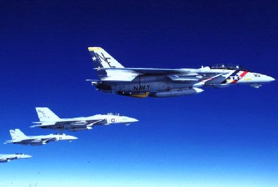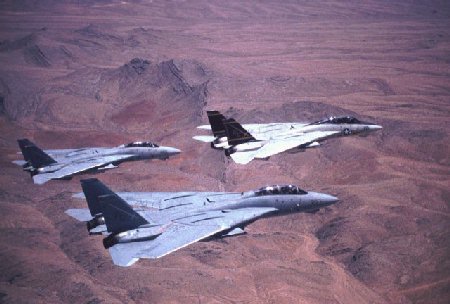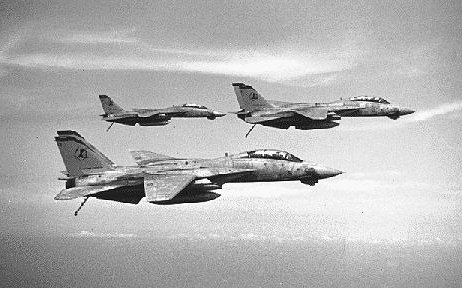 b/w three F14s inflight with hooks down