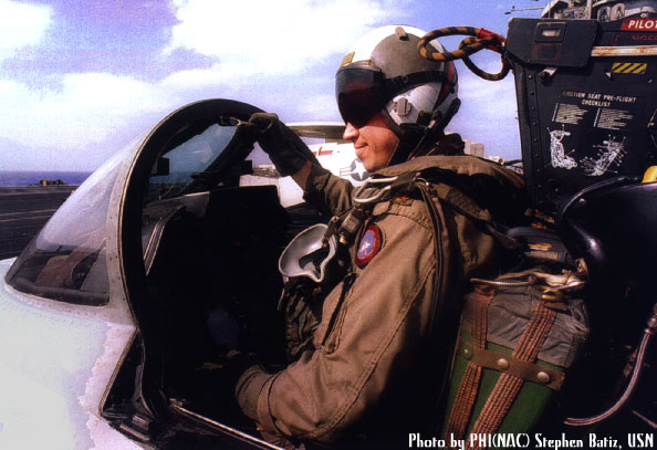 pilot in cockpit of F-14 showing ejection seat detail