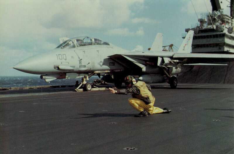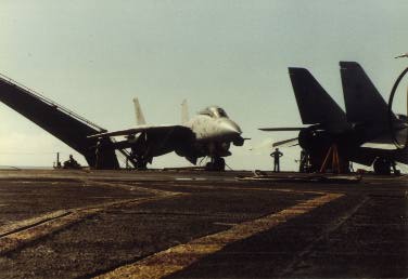F14 on carrier deck with wings extended