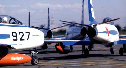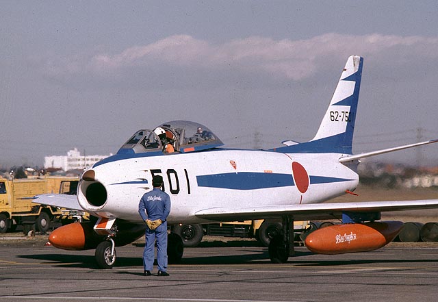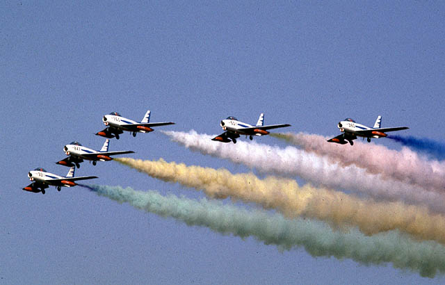 The Blue Impulse used North American F-86Fs from1960 to1980 when they were replaced by Mitsubishi T-2.