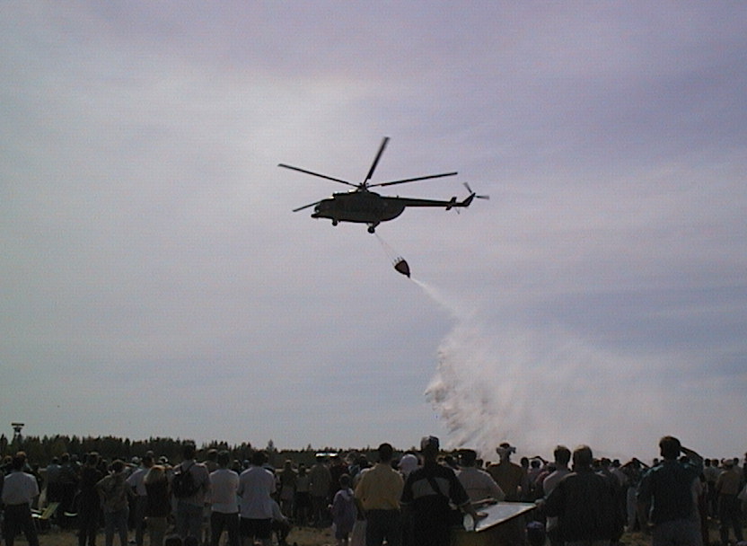 home for Russian women test pilots. The Mi-8 damaged its tail rotor in a