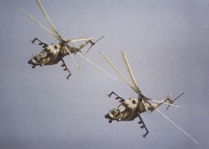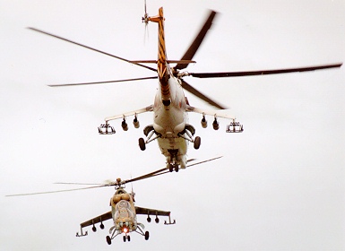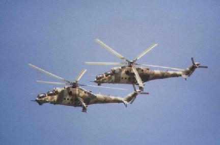 Mi-24 in Afghanistan. The two rotorcraft waited on the ramp at the
