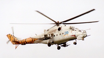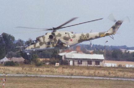 The rotorcraft is a Mi-24 "D" or "E" model. It was travelling home with a
