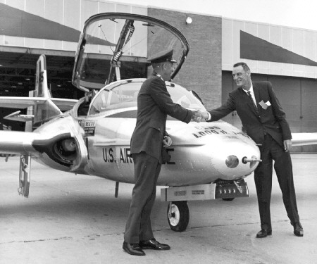 Accepting the 1,000th T-37 Tweet from Cessna (b&w)