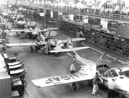 The T-37 assembly line in full swing (b&w)
