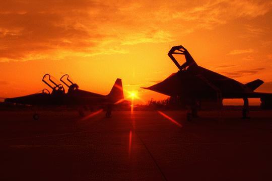 Rare pic of a T-38 side by side with an F-117 at sunset