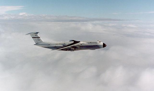 Very clean in flight profile shot of a C-5 sporting the old paint job