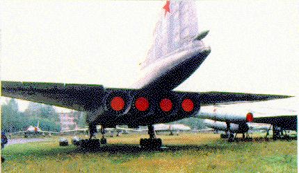 | S-100.JPG | 17914 bytes | Sukhoi's S-100/T-4 supersonic cruise missile bomber. In the background: Yak-24 Horse aka Letayuchy Vagon (Flying Boxcar), Mi-8 Hip, Mi-24 Hind-A, Mi-17, Ka-25 Hormone and Mi-10 Hook. |